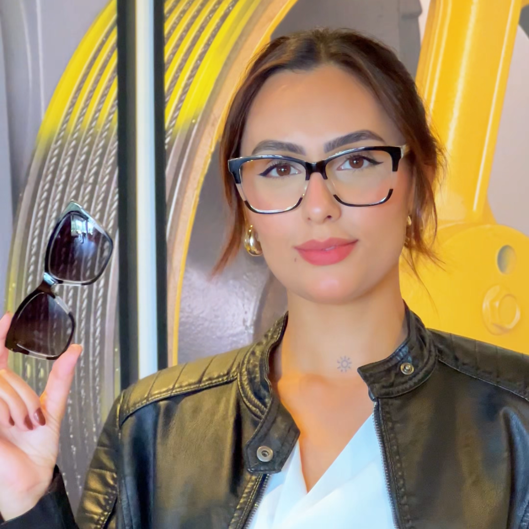 A lente solar clipon com proteção UV se encaixa com imãs discretos e firmes, tornando a troca entre grau e sol simples e rápida.